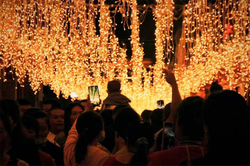 古城主街的流动灯海。