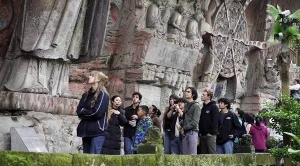 3月21日股票炒股配资开户,美国耶鲁大学Whiffenpoofs合唱团中国公益行活动走进大足。合唱团成员一行前往大足石刻参观,在千年石刻瑰宝中感受中华文化的魅力,进一步推动中美文化交流。