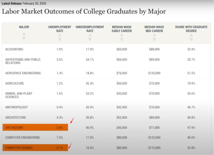 22-27岁应届毕业生,失业率创历史最低纪录。甚至,计算机专业的失业率达艺术史2倍。