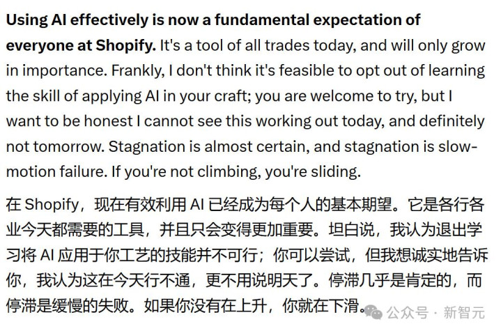 Shopify CEO Tobi Lütke更是激进地在对内备忘录中表示,管理人员必须证明AI无法胜任某项工作,才能招聘该岗位的新员工。