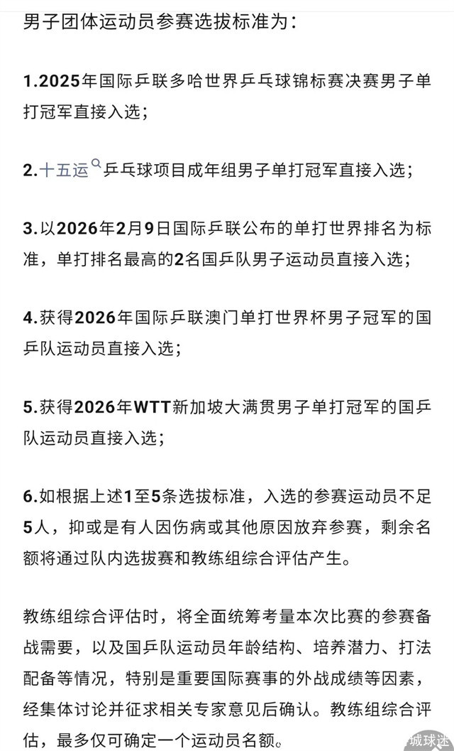 不过,王皓虽然没有指名道姓,但大家都知道他给了樊振东参赛的名额,只不过,小胖本人至今没有回应是否回归。毕竟,樊振东离开国家队已经很久了,他的问题至今没彻底解决,如果樊振东真的确定参赛,那么王皓大可介绍小胖的情况。如今,国乒担心樊振东不回归,还加了一些兜底条款,“如根据上述1至5条选拔标准,……,亦或是有人因伤病或其他原因放弃参赛,剩余名额将通过队内选拔赛和教练组综合评估产生。”