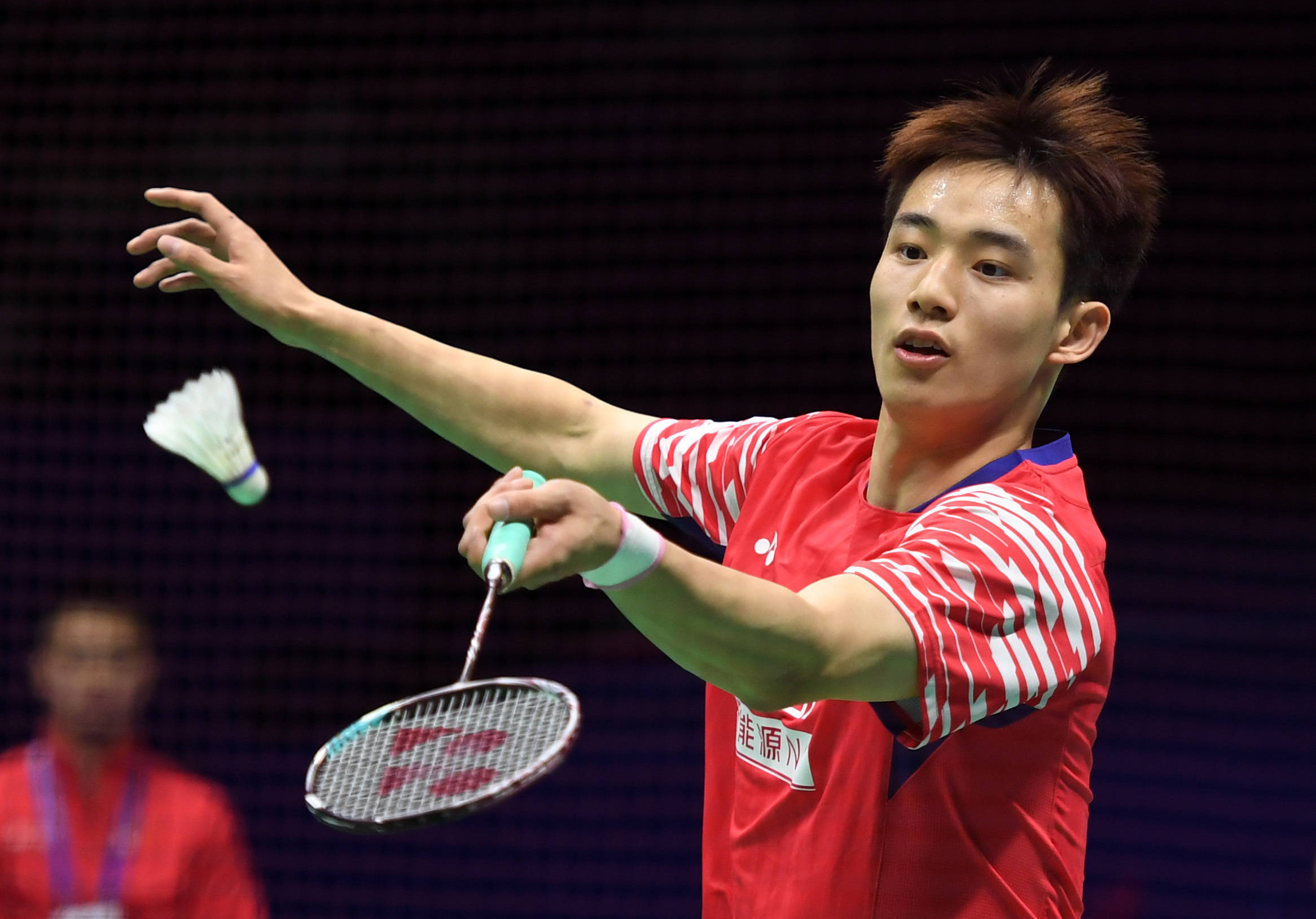 2月3日,中国队选手王正行在男单比赛中回球。新华社记者 李紫恒 摄男团比赛中,中国队迎战首次参加亚团赛男团项目的中国澳门队。首场男单比赛,王正行以21:16和21:15直落两局击败裴鹏锋,为队伍开了个好头。